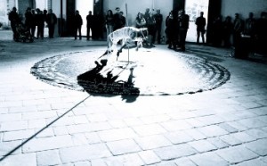 La ‘performance’, nel catalogo di espressioni possibili di cui dispone l’artista contemporaneo, è forse il terreno più difficile e delicato, ma senza dubbio quello che regala più soddisfazioni quando si riesce a cogliere nel segno. Cosa intendo? Tanto per cominciare la performance si configura fin da subito come esperienza di ‘arte totale’. La performance è infatti un gesto d’arte che va letto criticamente sia dal punto di vista dell’artista che dello spettatore. Esistono performance in cui ogni aspetto viene curato in modo maniacale e performance che lasciano molto margine nella loro realizzazione al caso, all’improvvisazione, all’intervento materiale degli spettatori presenti. Massimiliano Manieri, non nuovo a questo tipo di esperienze, ha scelto la prima strada, quella cioè di realizzare nello spettatore una performance di arte concettuale che oltre a comunicare un idea estetica si fa portatrice di un messaggio culturale. Massimiliano Manieri ha trovato nella performance l’espressione artistica che modifica il mondo in tutte le sue forme, ampliando la percezione del reale, un modo di fare arte che è vigile, critico, utile. La cosa che più apprezzo delle sue performance è il non voler ammiccare ad altre forme di scena come il teatro o il reading ma di essere sempre e solo performance, ovvero sia realizzazione eventuale di una metafora/messaggio “del mondo” che è “nel mondo”.