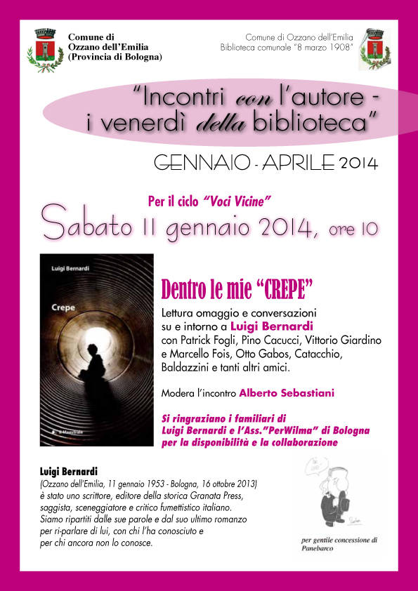 Nel giorno che sarebbe stato il 61simo compleanno di Luigi Bernardi, si svolgerà presso la biblioteca di Ozzano dell’Emilia (luogo di nascita di Luigi) un incontro/omaggio con i suoi amici.