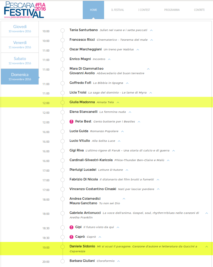 pescarafestival-programma-13-novembre-2016 10 novembre 2016 708 × 885 13 Novembre 2016 – Pescara – Musicaos Editore al Pescara Festival 2016, XIVsima edizione, con Daniele Sidonio e Giulia Madonna.