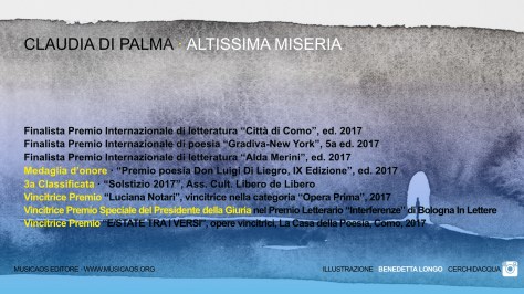 Siamo felici di annunciare che “Altissima miseria” (Musicaos Editore), di Claudia Di Palma, ha ottenuto la Medaglia d’Onore alla IX Edizione del Premio Internazionale Don Luigi Di Liegro, nel quale era risultata essere tra le opere finaliste.