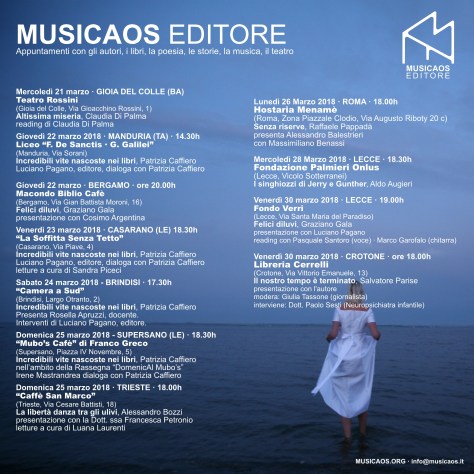Musicaos Editore. Prossimi appuntamenti, marzo 2018.