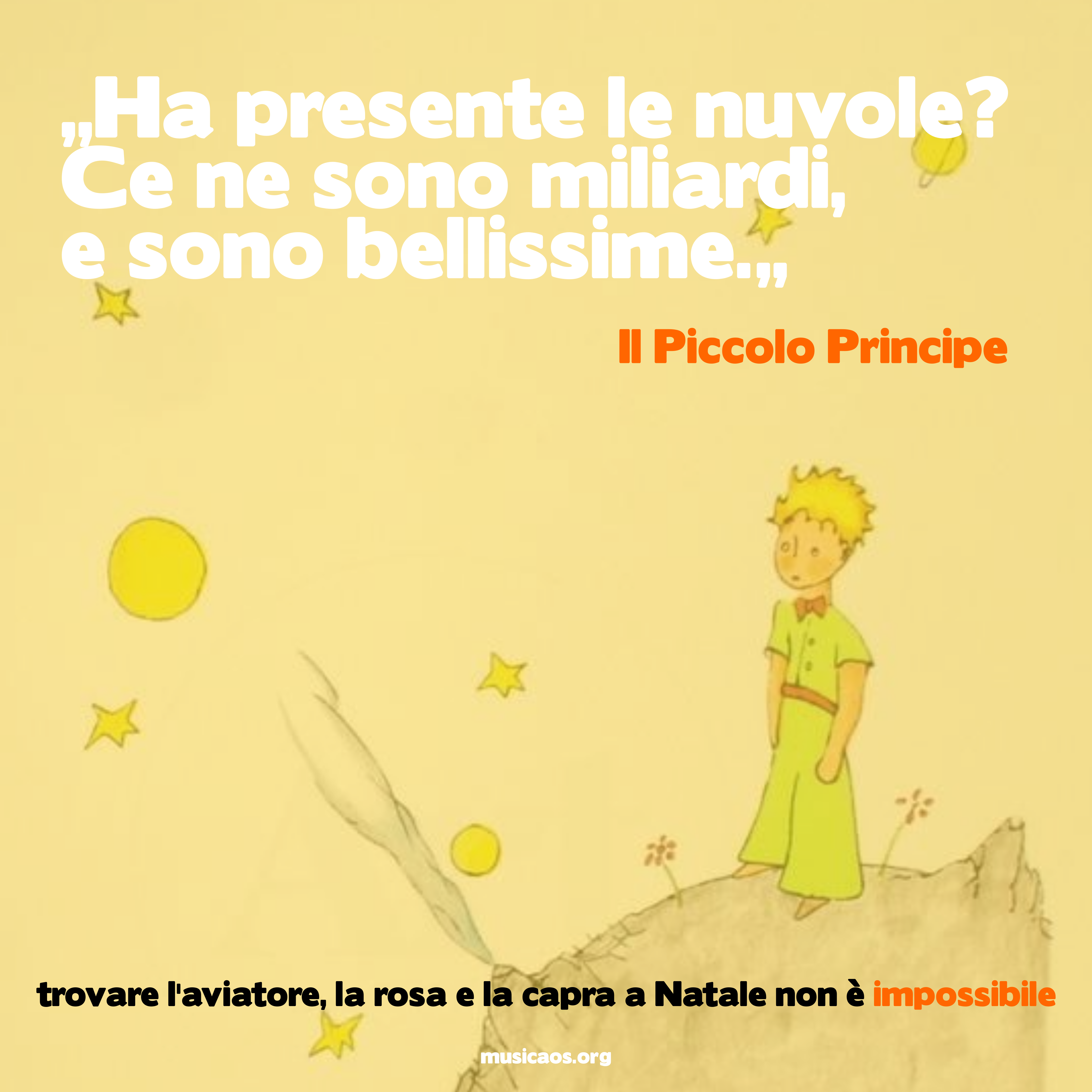 Il Piccolo Principe 19 novembre 2020 4017 × 4017 A Natale sarà impossibile… “Ha presente le nuvole? Ce ne sono miliardi, e sono bellissime.”