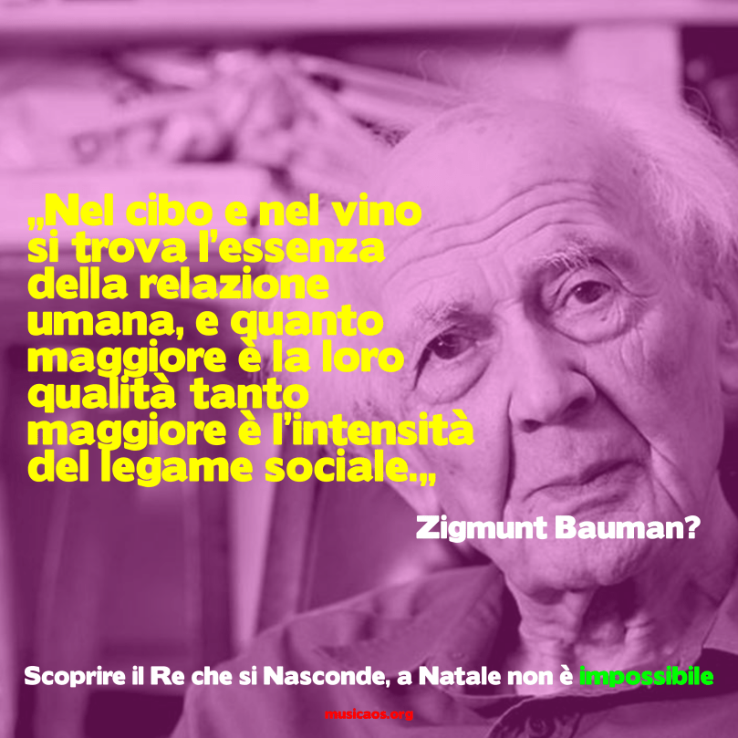 Zygmunt Bauman 19 novembre 2020 4017 × 4017 A Natale sarà impossibile… “Nel cibo e nel vino si trova l’essenza della relazione umana, e quanto maggiore è la loro qualità tanto maggiore è l’intensità del legame sociale.”