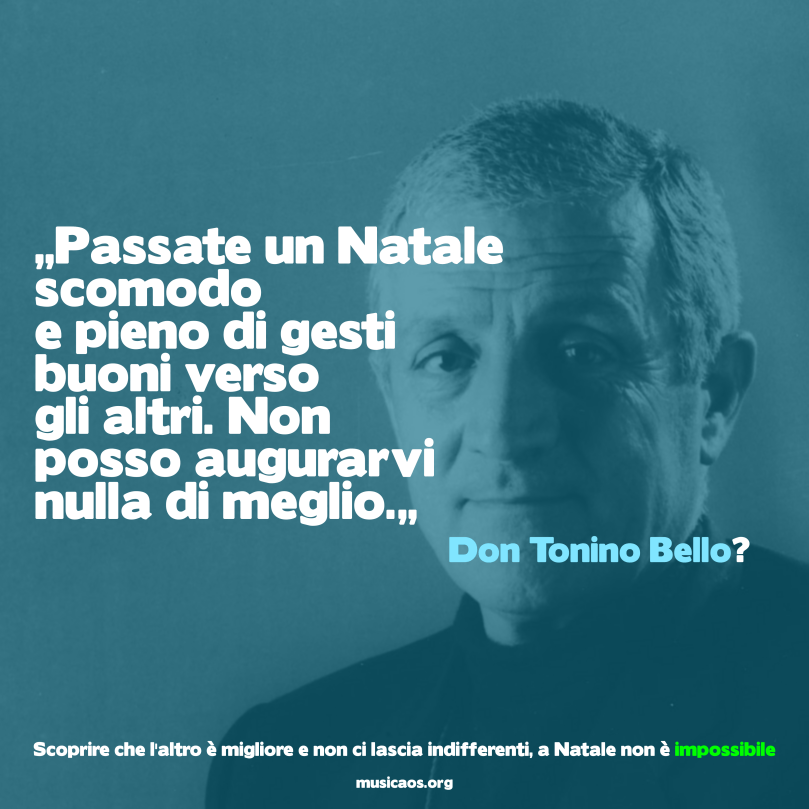 Don Tonino Bello 19 novembre 2020 4017 × 4017 A Natale sarà impossibile… “Passate un Natale scomodo e pieno di gesti buoni verso gli altri. Non posso augurarvi nulla di meglio.”