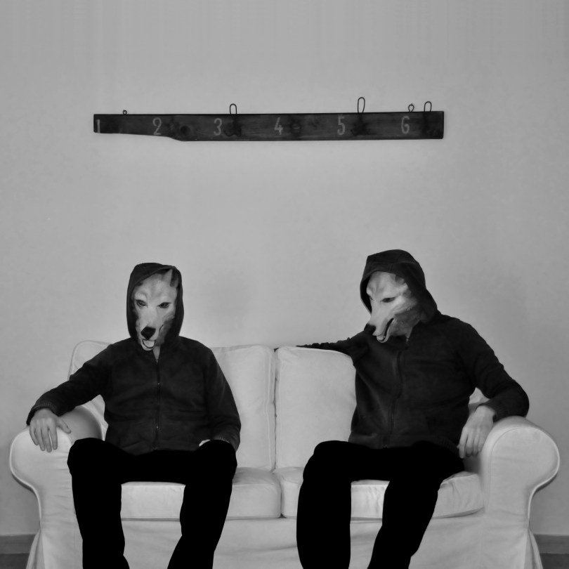 figures with dog mask 21 febbraio 2018 2848 × 2848 figures with dog mask Two figures with dog mask sitting on couch. Black and white.